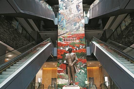 羊城晚报讯 记者林翎、实习生黄镁纯、通讯员高薇摄影报道:由中央美术学院教授唐晖牵头设计的巨型马赛克壁画《香山星座》日前收官,正在中山纪念图书馆进行装配。9月18日,羊城晚报记者在中山纪念图书馆中庭看到,该壁画高42.6米,宽4.4米,总面积187.44平方米,贯穿于图书馆地下一层至七层,从创作到完成历时约三年,是国内罕见的巨型室内马赛克壁画(见下图)。据了解,《香山星座》的壁画由四会市伟祺玻璃建材有限公司承接制作。为完成作品,该公司安排了60多名经验丰富、技艺精湛的师傅参与,先后耗时3个月,使用了约200万颗马赛克。