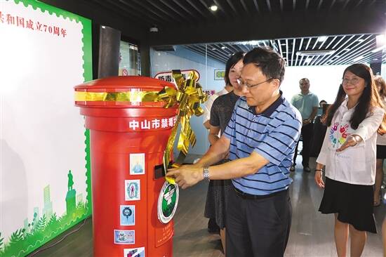 羊城晚报讯 记者林翎、实习生黄镁纯,通讯员宁双权、刘予欣摄影报道:为庆祝中华人民共和国成立70周年,借助集邮文化增强全民尤其是青少年的识毒防毒拒毒意识,9月19日上午,由中山市禁毒办、中山市公安局、中国邮政集团公司中山市分公司共同建设的“健康无毒、邮你邮我”广东省首个禁毒主题邮局在中山市禁毒教育基地正式落成。会上,中国邮政集团公司中山市分公司副总经理曹应文在致辞中表示,中山市禁毒主题邮局是广东省第一家以禁毒宣传为主题的邮局,期望中山市禁毒主题邮局能够成为中山市禁毒宣传工作的一个新平台,助力全国禁毒示范城市创建工作,增强青少年的禁毒意识。