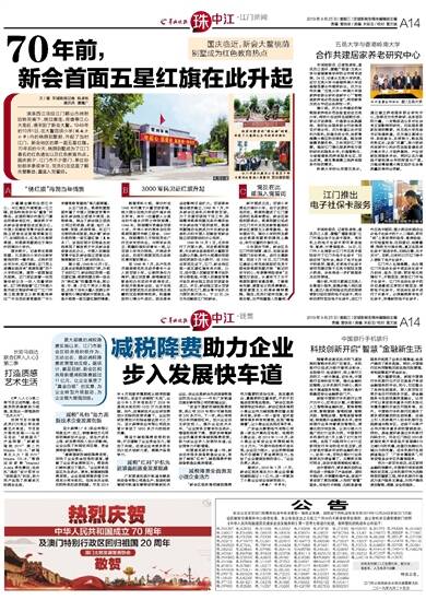 滚滚西江流经江门鹤山杰洲附近转而南下,绕过潮连、荷塘等江心大岛后,便来到了新会大鳌。1949年的10月1日,在大鳌百顷小学(现南沙小学)内的桃荫别墅前,升起了当时江门、新会地区的第一面五星红旗。70年后的今天,桃荫别墅成为了江门著名的红色遗址以及红色教育热点。国庆前夕,江门市不少部门、单位纷纷前来参观学习,党员们在这里了解先辈事迹、重温入党誓词。
