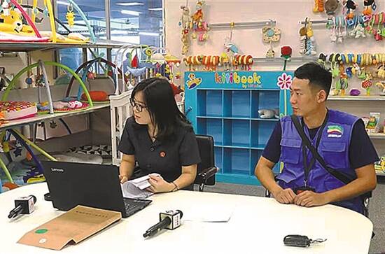 网格员(右)参与司法调解事务