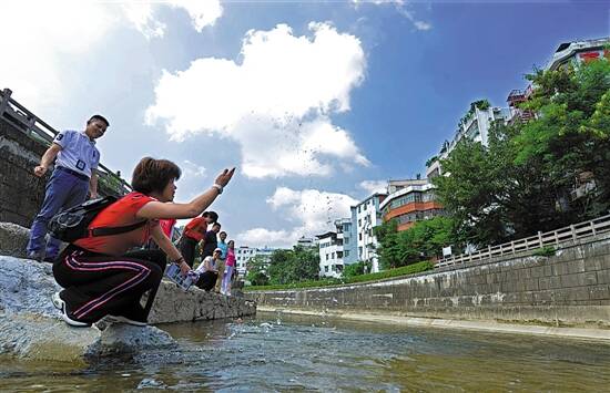 居民体验布吉河华丽转身 (冼余汉/摄)