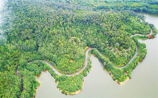 文/余宝珠 图/王俊伟蜿蜒盘旋的环湖绿道长达17公里,旁边就是风景宜人的水库,湖光粼粼绿树成荫,人们三三两两或散步或骑行于这绿水青山之间,很是惬意。这舒心的一幕几乎每天都出现在东莞黄江镇黄牛埔森林公园里,该公园生态环境优美绿道建设完善,不仅是东莞黄江周边居民休闲的好去处,还吸引了深圳惠州等周边居民前往,成了新晋的“网红打卡地”。