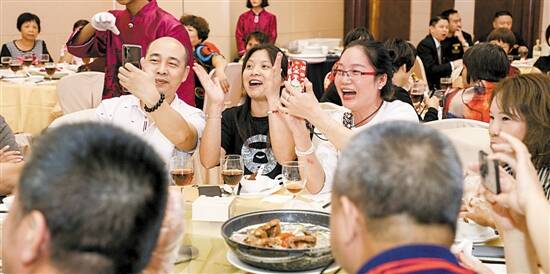 众人在品尝花宴