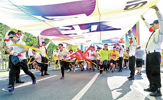 11月1日下午,由国家体育总局群众体育司发文批复指导、珠海万科发展有限公司主办的2019珠海城市乐跑赛在日月贝活力开跑。包括汤臣倍健、云洲智能等企业在内,本届赛事吸引了来自生物医药、智能制造、文化传媒等领域的60多家企业和公益团体、1800多人报名参与,共同完成5公里的欢乐跑程。互动保障全面升级