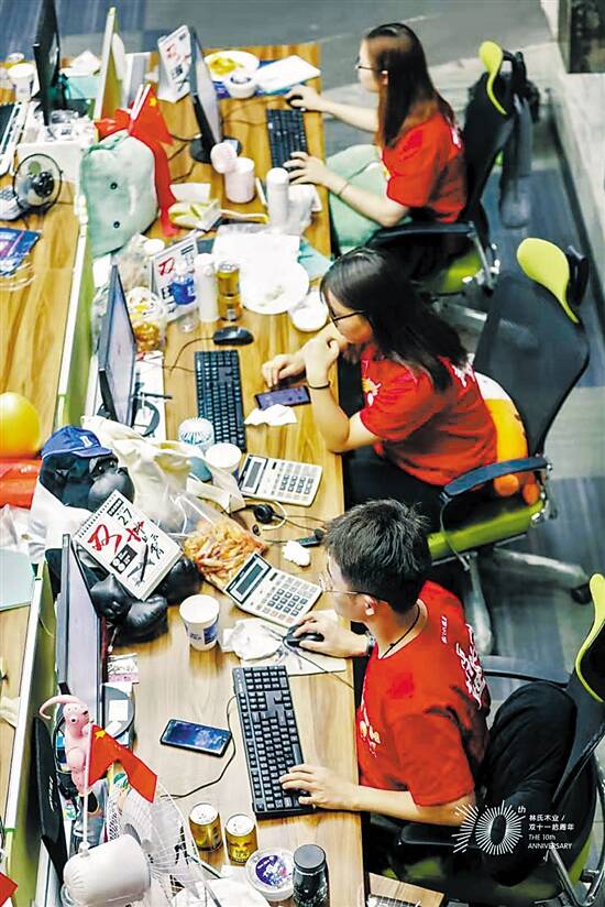 11日凌晨3时许,透过监控,丁捷敏发现部门客服人员长时间奋战后已稍有疲惫,她马上走出办公室,安抚客服情绪,不断给客服“打鸡血”,“那时候感觉每一秒都是钱,可以换算出每一秒产生的收益”。