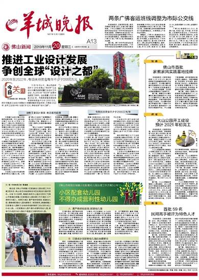 羊城晚报记者 欧阳志强11月19日上午,佛山市政府召开了2019年佛山“市长杯”工业设计大赛活动颁奖暨工业设计工作会议,为2019年“市长杯”优秀作品颁发了奖杯。会议透露,2020年至2022年,市级财政每年将安排专项扶持资金不少于2000万元,用于对推进工业设计发展的4类事项提供资金扶持,力争到2022年,全市工业设计收入达到30亿元,争创全球“设计之都”。