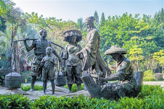 《东坡劝农图》雕像 羊城晚报记者 陈骁鹏 通讯员 王锭铨 摄