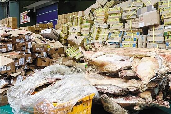 未经检验检疫的冻肉、假冒品牌月饼等72个品种违法食品被集中销毁