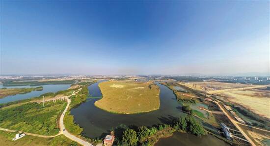 基于金山新城丰富的自然水体资源,惠州市提出以水环境综合整治为先导,通过“水系连通、多元治污、湿地绕城”等措施开展流域系统治理,构建山水林田湖草生命共同体,建设金山新城。