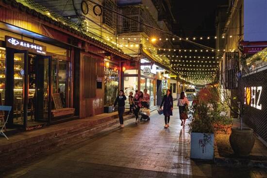 夜色中的祝屋一巷,游客被文艺小店吸引