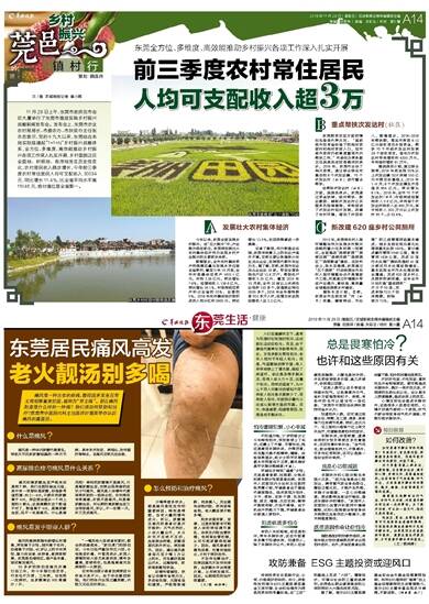 文/图 羊城晚报记者 秦小辉11月28日上午,东莞市政府在市会议大厦举行了东莞市推进实施乡村振兴战略新闻发布会。发布会上,东莞市农业农村局局长、市委农办、市扶贫办主任张永忠表示,党的十九大以来,东莞结合本地实际搭建起“1+1+N”乡村振兴战略体系,全方位、多维度、高效能推动乡村振兴各项工作深入扎实开展,乡村面貌正在全面地、积极地、有序地发生历史性变化;农村居民收入稳步增长,今年前三季度农村常住居民人均可支配收入30034元,同比增长11.4%,比全省平均水平高15146元,绝对值位居全省第一。