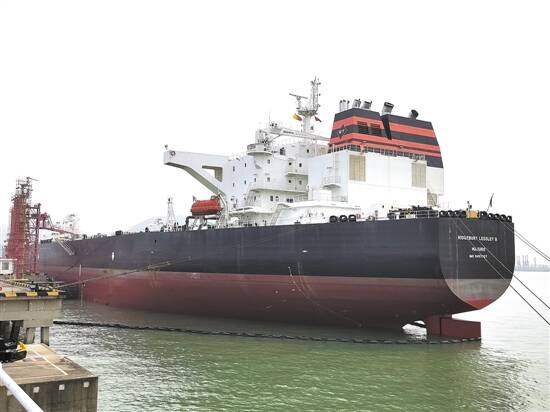 10月11日,珠海海事局、珠海市港口管理局召开专题会议,顺利解决了中化珠海15万吨级油轮无法常态化靠泊的瓶颈难题。然而,由于该油轮比原计划提前7天到港,仅给该公司预留了8天的保税储罐性质变更时间,十分紧张。为帮助企业解决码头靠泊及储罐性质变更等实际困难、确保首艘15万吨级重油外轮靠泊万无一失,高栏港区管委会与海关获知情况后,急企业之所急,多次召开专题联席会议,研究制定了监管方案。10月28日,15万吨级原油外轮“莱斯利”号终于顺利靠泊珠海高栏港中化码头(见左图),这是珠海历史上进港的第一艘15万吨级远洋重油外轮。