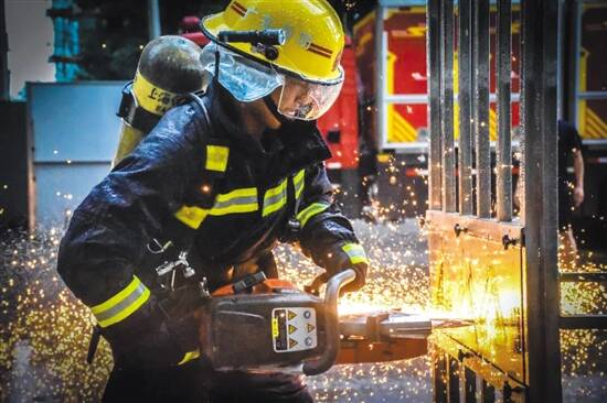 灭火救援战斗员在训练 (“佛山消防”微信公众号供图)
