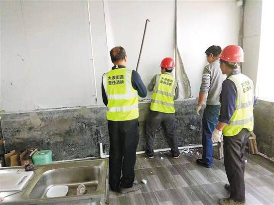 12月24日,居民投诉称龙华区大浪街道同胜社区白云山新村37栋业主用泡沫彩钢板在楼顶加建铁皮房,存在消防安全隐患问题。接到投诉后,大浪街道立即组织人员前往核查,现场发现业主用泡沫彩钢板对楼顶原有结构进行封闭,用于住人和生火做饭,存在较大消防安全隐患。针对上述情况,执法人员向当事人特别说明了该行为的违法之处以及产生的安全隐患,要求其配合整治拆除。当事人对此表示理解,并主动清空物品。随即,大浪街道出动清拆工人对泡沫彩钢板进行拆除,及时消除违法建筑隐患问题。执法人员表示将会继续加大对违法建筑的查处力度,一旦发现违法加建将依法拆除。
