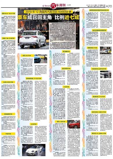 文/图 羊城晚报记者 黄斯国家市场监督管理总局缺陷产品管理中心发布的最新信息显示,2019年12月合共有多个汽车品牌在国内发布了涉及多款车型的召回公告,涉及的汽车(不含摩托车)数量为606658辆。其中,主打私人用车市场的乘用车合计为606556辆,另外的102辆则是归属于商用车范畴的货运牵引车和新能源大客车。此外,还有790辆宝马摩托车也在召回之列。相关的乘用车品牌(企业)分别是奔驰(包括中欧汽车生产的奔驰改装车)、众泰、宝马、福特、大众、起亚、阿斯顿马丁、丰田、凯迪拉克、林肯、斯巴鲁。