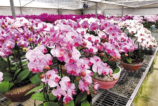 羊城晚报讯 记者秦小辉、通讯员叶雅贞摄影报道:春节临近,选购心仪的年花被不少市民提上日程。记者近日走访发现,今年,高贵典雅的蝴蝶兰成为年花重要选择,销售非常火爆,价格同比增长近30%。小年未至,记者在道滘镇济丰农业产业园内看到,彩旗飘扬、人声鼎沸,前来购买年花的客商络绎不绝。走进温室大棚内,独特的花香马上盈满鼻腔,不同种类、造型各异的蝴蝶兰盆花被整齐地摆放在苗床上,让人目不暇接。