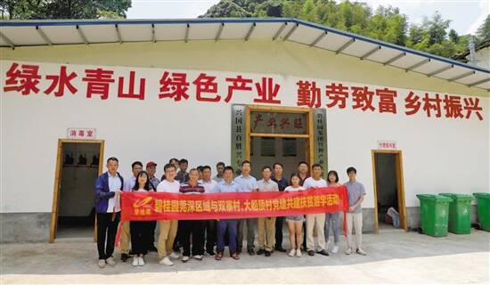 其中,自2018年4月份碧桂园莞深区域与双寨村结对党建扶贫以来,为启发双寨村全体党员干部的脱贫攻坚思路,莞深区域曾多次组织该村党员干部与村民代表前往碧桂园职业学院参观现代化产业工人技能培训、前往英德市树山村参观考察苗圃种植脱贫项目、前往英德市连樟村参观考察特色旅游开发项目、甚至前往江西省兴国县扶贫游学,参观考察当地的苗圃、竹鼠、灰鹅种植或养殖项目。
