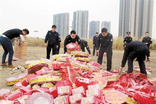 一吨烟花爆竹被集中销毁