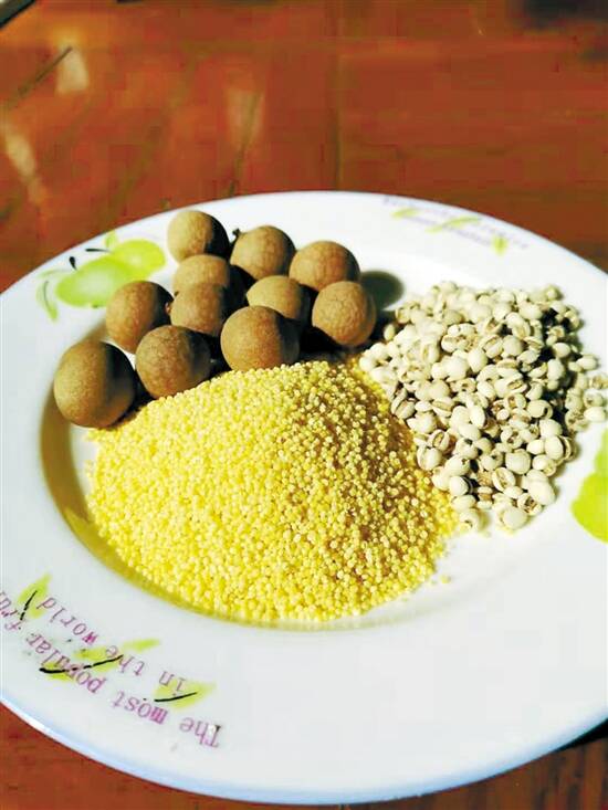 制法:将小米、薏米、龙眼肉洗净,放入锅中,加入适量水,熬制30分钟即可食用。