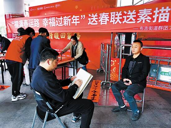 布吉为返乡旅客送春联送素描