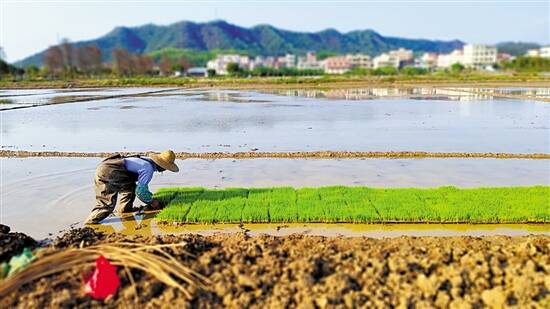 春耕是各类作物种植生长的重要阶段。“我们的口号是:防疫不松懈,春耕不误时。”斗门区乾务镇农林水办公室主任张劲辉告诉记者,“镇里面要求清明前一定要把水稻插完,以目前的进度,完成这个目标完全没有问题。”