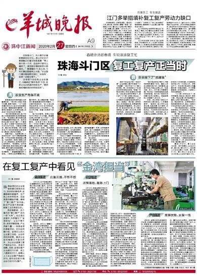 据了解,2月5日,斗门提出“九个到位”,即防控机制到位、员工排查到位、宿舍管理到位、食堂管理到位、空调管理到位、车辆管理到位、工作场所防疫到位、培训工作到位、设施物资到位,引导企业工人有序返岗、安全上岗。2月21日,斗门发布“暖企25条”,在用工、原材料、资金、防疫物资等方面为企业复工和重点项目加快建设创造条件,助力企业复产复工。