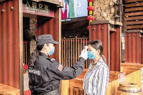 欢乐海岸PLUS相关负责人表示,虽然现在园区恢复营业,但目前仍处于疫情期间,所有人员入园前都要经过“四步走”流程:佩戴口罩、实名登记、测量体温、准许入园。