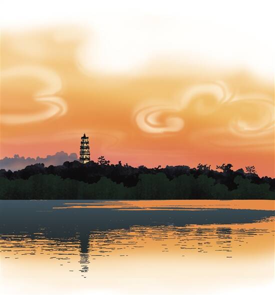 早在苏东坡到来之前,有个叫陈偁的惠州太守,将泗洲塔纳入“惠州八景”之中,称为“雁塔斜晖”。清代藏书家吴骞曾赋诗赞扬泗洲塔,写下的正是“雁塔斜晖”的意境:倒景入湖塔影长,湖光袅袅动斜阳。不知自起浮屠日,几度金乌下复翔。