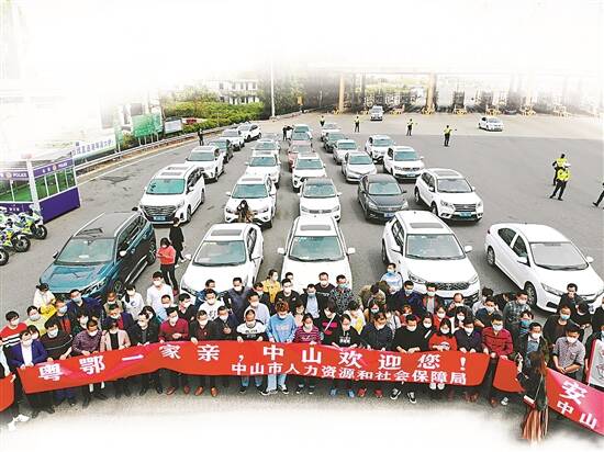 中山市人社局连夜部署, 3月11日即与湖北各地商会对接联系,获知中山市宜昌商会希望召集滞留在当地的会员企业员工集中驾车返粤,便当即与当地疫情防控指挥部沟通协调,并取得当地政府各相关部门的支持配合。报名成行的员工均持湖北健康码绿码或当地健康证明,出发前也经过了相关健康检查,于3月15日由当地警车护送返回。