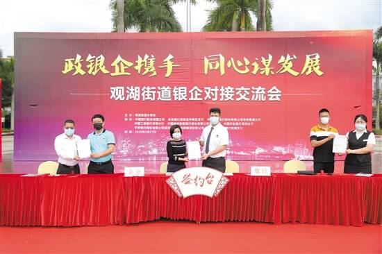 近日,一场别开生面的“银企对接”系列融资专场活动在龙华区观湖街道世纪广场举行,1家担保公司、7家国有银行、61家中小微企业汇聚现场,最终18家企业现场成功签下1.83亿元融资金额的大单。为推进辖区企业更好更快复工复产,自3月5日以来,观湖街道对辖区2812家企业进行全覆盖走访服务,全方位收集并协调解决企业诉求及困难。其中,多达620家中小微企业存在“融资难、融资贵”的问题。为此,观湖街道专门成立融资服务专班,搭建银企交流对接平台,当起“金融红娘”,为银行和企业“牵线搭桥”对接,帮助企业拓宽融资渠道,解决贷款、融资等问题。