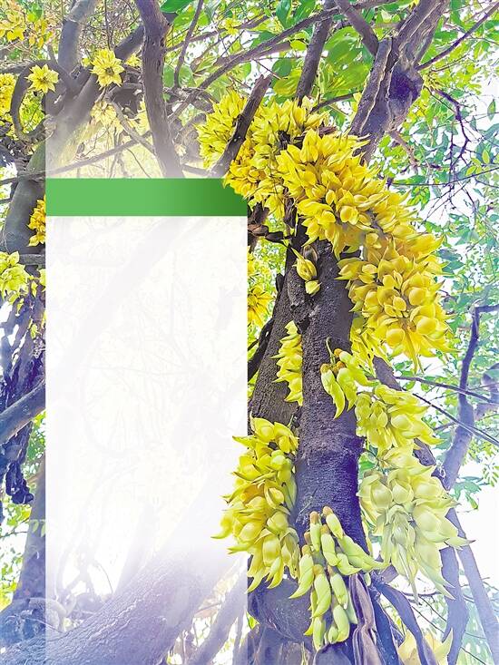 阿坤说:“野生禾雀花开花时,初开时为翡翠绿,盛开时为柠檬黄,非常漂亮。”