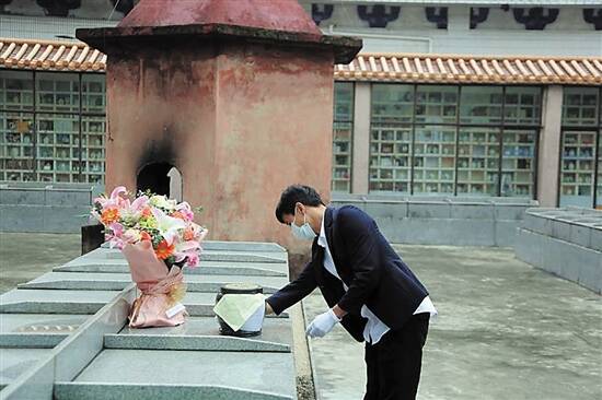 文/图 羊城晚报记者 郑达擦拭骨灰坛、献上鲜花、传递思念……王元(化名)身穿正装,带着白手套,神情肃穆,动作温柔。王元是珠海市殡仪馆的服务员,上午10点半,他早早准备妥当,开始代委托人祭扫亲人。