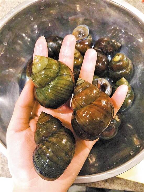 ◀家乡螺蛳个头大
