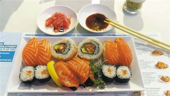 将金枪鱼、北极贝、三文鱼、章鱼各取25克鱼生,佐配适量萝卜丝、柠檬片与紫苏叶,适量蘸取酱油,鱼生的些微腥味被酱油的鲜甜酱香完全取代,在舌尖上跳出优美华尔兹,若酱油蘸取稍多了些,则赶紧吃下几条萝卜丝,萝卜厚重的口感将过咸的味道中和,岂不妙哉!