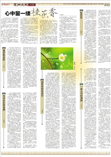 光阴的上河,如一件绸缎衣衫那样柔软。流水播送水香,直逼柳岸,人渺如蚁,撒落在河的两岸街衢,有豆花和胡辣汤的气息,让人鼻息颤动,禁不住打了两个喷嚏。少年春衫薄,四处走动,真的如《东京梦华录》里所说,“四野如市,往往就芳树之下,或园囿之间,罗列杯盘,互相劝酬。都城之歌童舞女,遍满园亭。抵暮而归,各携枣糊、炊饼、黄胖、掉刀、名花、异果、山亭、戏具、鸭卵、鸡雏,谓之门外土仪。轿子即以杨柳杂花装簇顶上,四垂遮映。自此三日,皆出城上坟”。手搭凉棚,远远地望去,见一支上坟、扫墓兼踏青、春游的队伍回城走来。