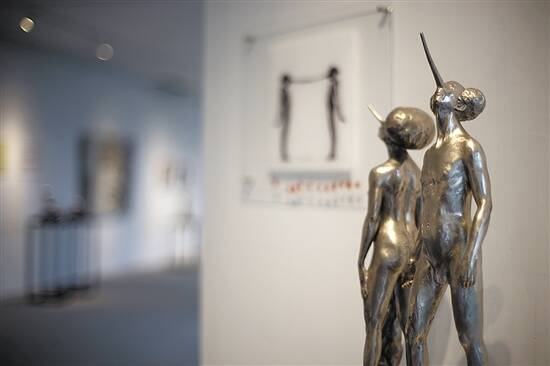 美术馆三楼展示厅中展出的一件雕塑作品