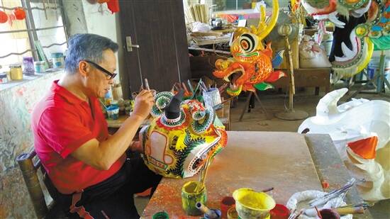 夏志成在制作传统狮头