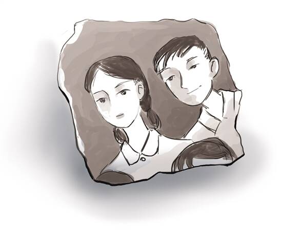 如果仔细看那张黑白毕业照,你会发现后排有个男生跟她凑很近,表情得意,抠下来像情侣照。老实说,是我故意的。