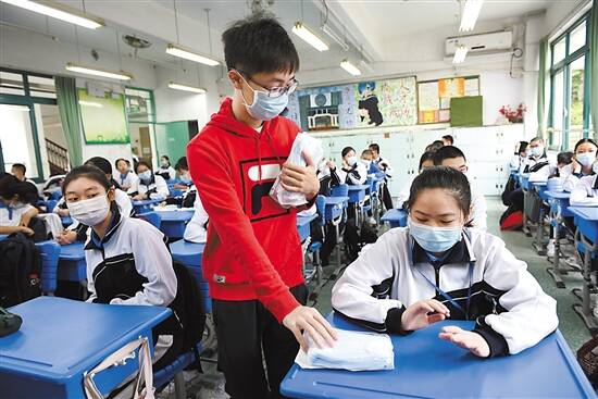 宝安中学初三学生开学复课,按班级发放口罩