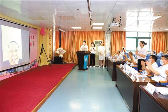 羊城晚报讯 记者张闻、通讯员黄晓晴摄影报道:“我妈妈的健康码已经变成绿码,谢谢你们帮她挺了过来!”今天是第109个国际护士节,在佛山市第二人民医院护士节庆祝大会现场,一场特殊的视频连线感动了在场的医护人员。视频的一边是八旬武汉出院新冠肺炎患者徐老太的女儿们,另一边则是包括援湖北医疗队员在内的佛山市二医院的白衣天使们。通过网络视频,老太太的女儿们为市二医院的护士们送上感激之情和节日祝福,云致敬白衣战士。