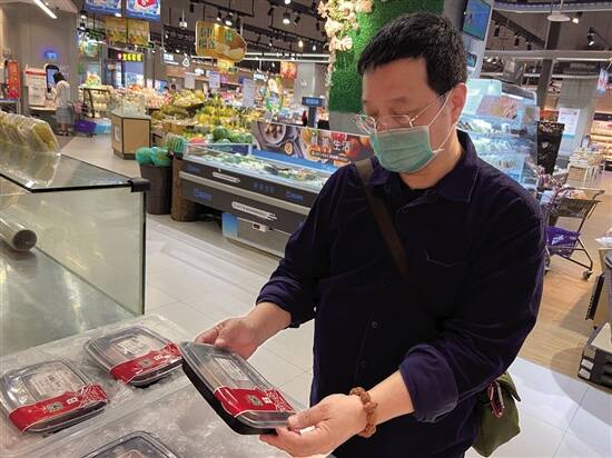近日,在盒马鲜生云门店门前,出现两个行为怪异闷头拍照的人,这正是花名“波波”的美食家劳毅波和本报记者。