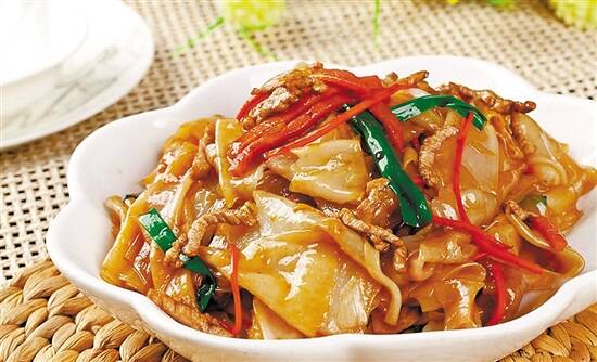 湿炒牛河也离不开师傅的手艺。炒河粉要大火快炒,不可过多翻动,以免将米粉炒碎;接着炒牛肉,加氽烫熟的芥蓝,再将淀粉汁倒在炒好的河粉上就算大功告成。一定要趁热食用,否则河粉会粘连在一起。