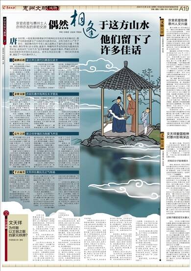 “文天祥的忠言懿行对惠州知识分子的立身处世产生了深刻影响。”惠州市岭东文史研究所副所长、惠州文史学者何志成介绍,惠州于元末明初成为何真维护中国统一举广东之籍归顺明朝的策源地,明末清初是反清复明的最后也是最为惨烈的战场,清末民初又成为以推翻满清统治缔造共和为主要目标的辛亥革命重镇,上世纪三四十年代的抗日战争中又是一座军民同仇敌忾表现出色的城市。