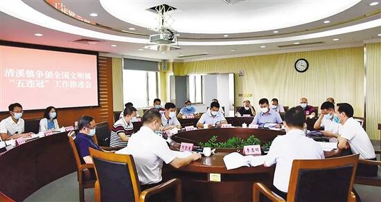 近日,为深入贯彻落实中央、省市相关部署要求,进一步明确目标任务、压实责任,全力推进争创全国文明镇“五连冠”工作,清溪镇召开争创全国文明镇“五连冠”工作推进会,总结该镇文明创建工作开展情况,对《清溪镇争创全国文明城市“五连冠”迎检工作方案》进行解读和深入探讨交流,并就推进争创全国文明镇“五连冠”工作再动员、再部署,凝心聚力向蝉联“五连冠”的目标迈进,为东莞市争创全国文明城市“五连冠”贡献力量。