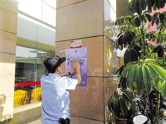 民警陈志生张贴防控宣传单