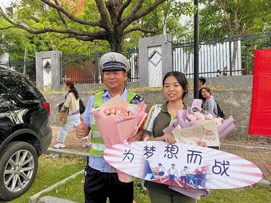 羊城晚报讯 记者谢颖、通讯员樟宣摄影报道:女儿今年参加高考,爸爸却舍弃单独陪护女儿的机会,坚持投身高考护考工作中,这是东莞樟木头交警大队民警欧国亮的一份坚守。欧国亮是一名从警20多年的老交警,自参警以来,他参加过无数次的护考护学行动,尤其是东莞八中落户樟木头后,历年的高考护考工作,他一次也没落下。今年,轮到他的女儿参加高考了,单位领导考虑到他的实际情况,本想给他申请休假陪考,但考虑到当前疫情及辖区主干道路改造施工,交通保障警力严重不足的情况,他放弃了请假单独陪护女儿的打算,要求参加大队的护考行动,投身到东莞八中高考学生到常平中学参考的工作中。他说,作为父亲他一直期盼着女儿高考的这一天,很想单独陪一下女儿;但作为一名交警,护卫女儿和她的同学们平安顺利参加高考,也是自己的职责所在,非常值得。