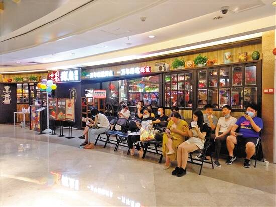 在高德置地广场采访时,记者发现不少食客都表示,即便等位时间较长,也依然愿意继续等。“在商场内等不会太闷,因为可看、可逛的地方很多,加上有冷气,人也比较舒服。”来自肇庆是苏先生告诉羊城晚报记者,他老家的餐饮业恢复得比较慢,到广州之后,明显感觉到广州的餐饮业恢复得很好,他喜欢的店基本都要等位。