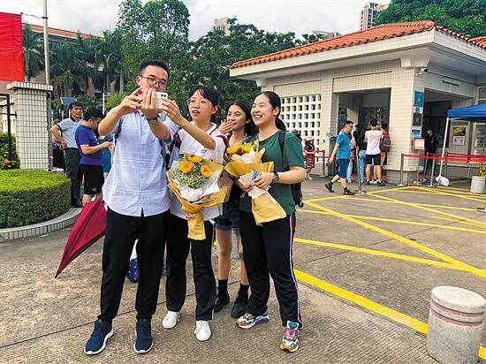 高考最后一场考试还未结束,珠海几个考点外面便聚集了不少家长。8日下午4时多,在珠海市第一中学考点,来自珠海西区的刘女士捧着一束漂亮的花朵等待女儿走出考场,“孩子备考很辛苦,等她走出考场,第一件事就是拥抱她”。何女士也为儿子准备了一束漂亮的向日葵,“希望孩子以后的生活欣欣向荣,也希望他不仅照亮自己,也能照亮别人,”何女士说,儿子梦想的大学是浙江大学,“希望他能梦想成真”。