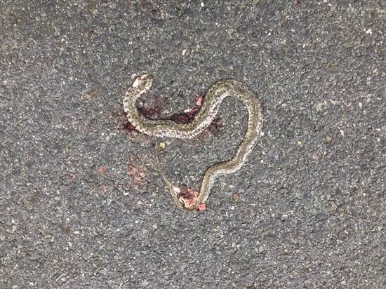 一条蛇被轧成了“蛇饼”