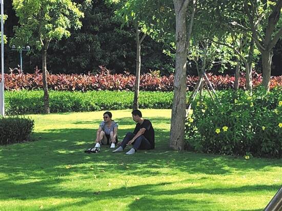 不少游客在树荫下休息